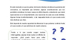 Informativo Apoderados: En este momento en que los países del mundo intentan sobrellevar la pandemia del coronavirus, es importante que tomemos algunas consideraciones que nos permitirán sobrellevar de mejor manera la difícil situación, entendiendo que habrá repercusiones en el comportamiento y las reacciones de cada uno serán distintas. Algunas formas …